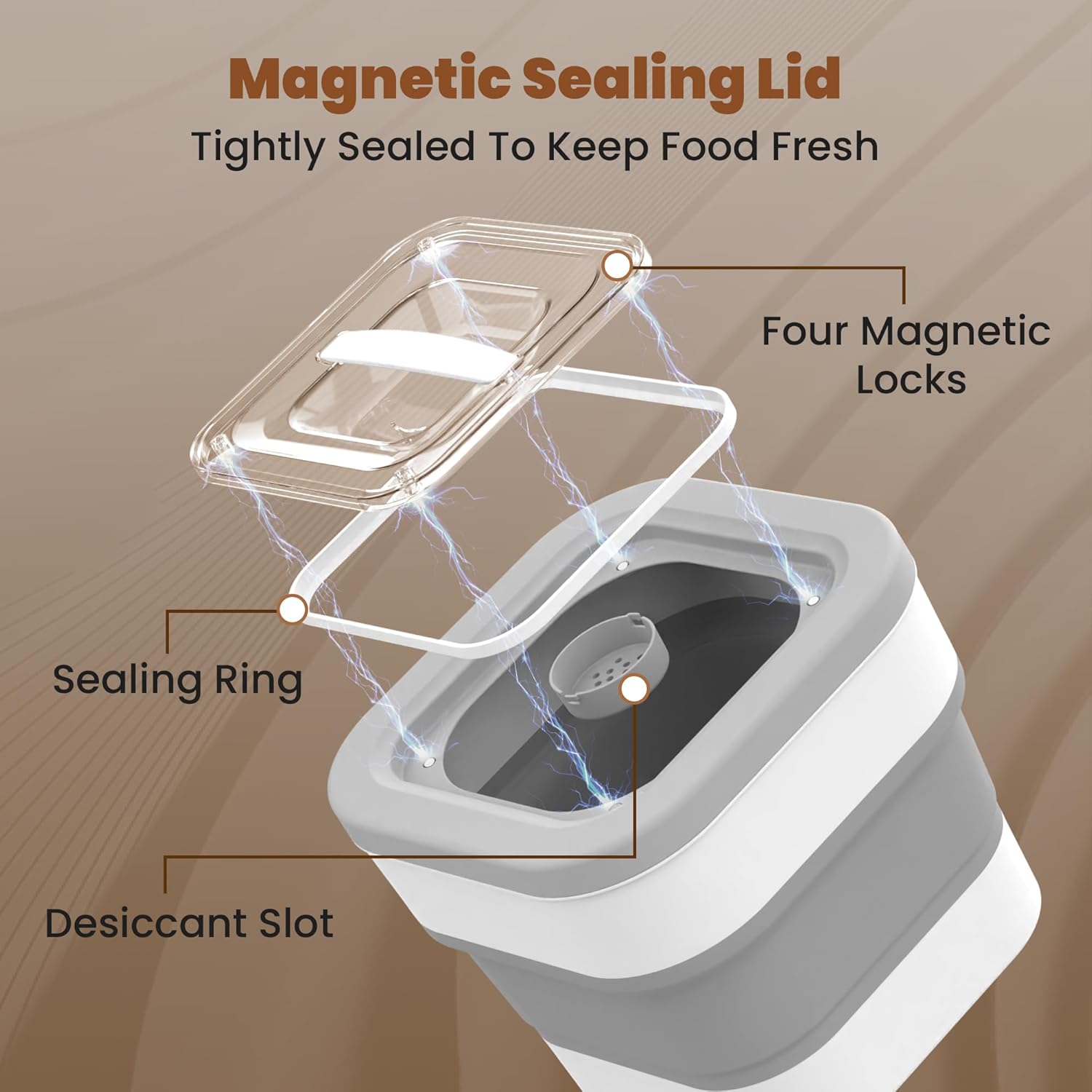 Collapsible Pet food storage Container, 10-13LBS, with Handle, Grey