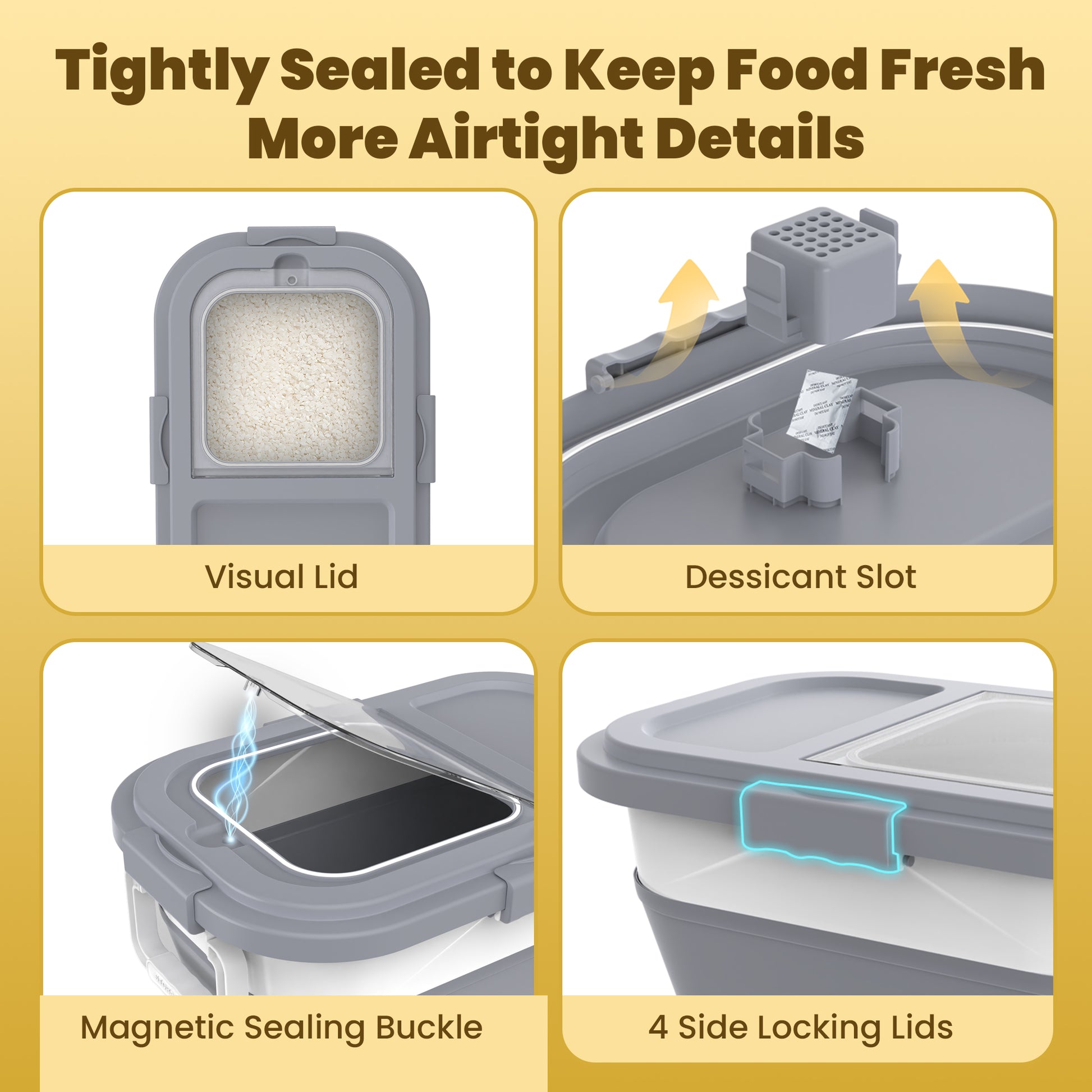 - SUPERIOR SEALING FOR FRESHNESS:The cat food container with double airtight seals and 4 side locking lids offers excellent sealing ensures your pet's food stays fresh longer, free from moisture.