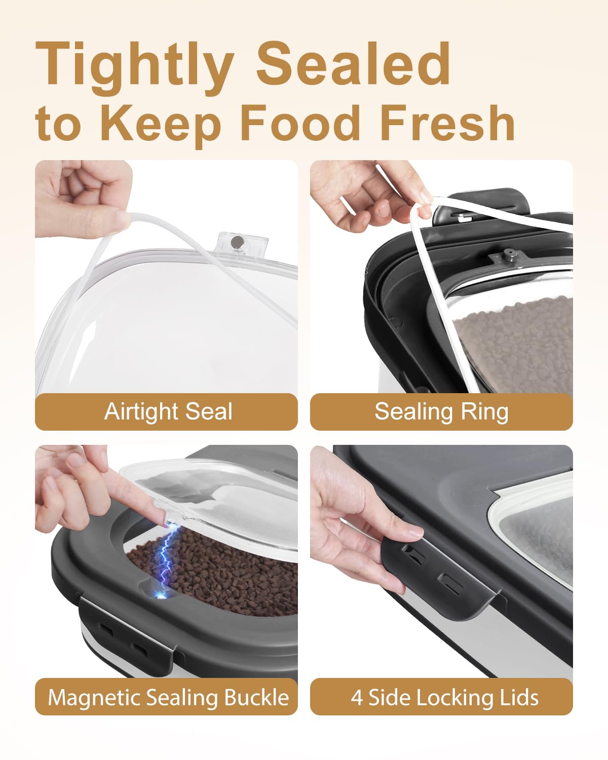 - Superior Sealing for Freshness: Our rice storage container is designed with a double airtight seal and 4 side locking lids, ensures your pet's food stays fresh longer, free from moisture