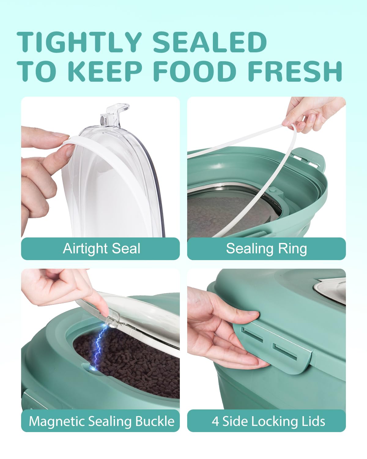 - SUPERIOR SEALING FOR FRESHNESS:The double airtight seals and 4 side locking lids offers excellent sealing ensures your pet's food stays fresh longer, free from moisture